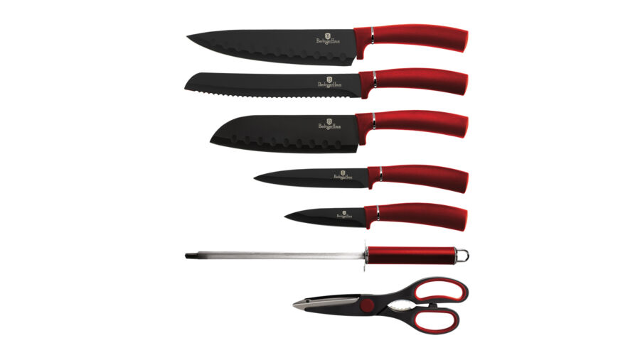 Berlinger Haus Metallic Burgundy Line 8 részes rozsdamentes acélból készült, titán bevonatú késkészlet.