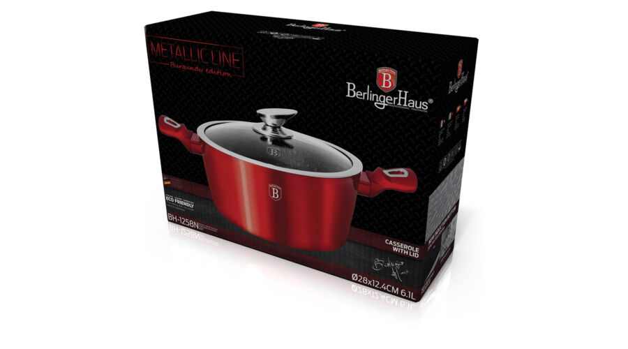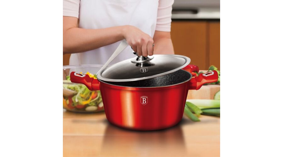 Bruttó ár: 12 890 Ft.RészletekBerlinger Haus MetallicBurgundy Line lábas márvány bevonattal, fedővel, 32 cm