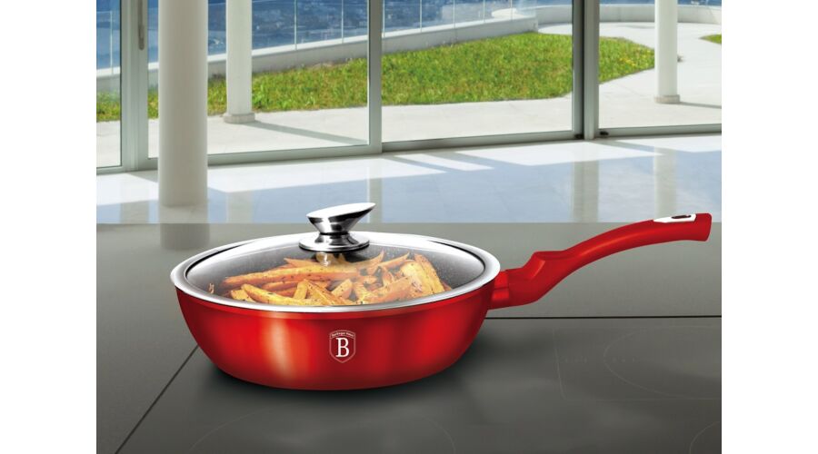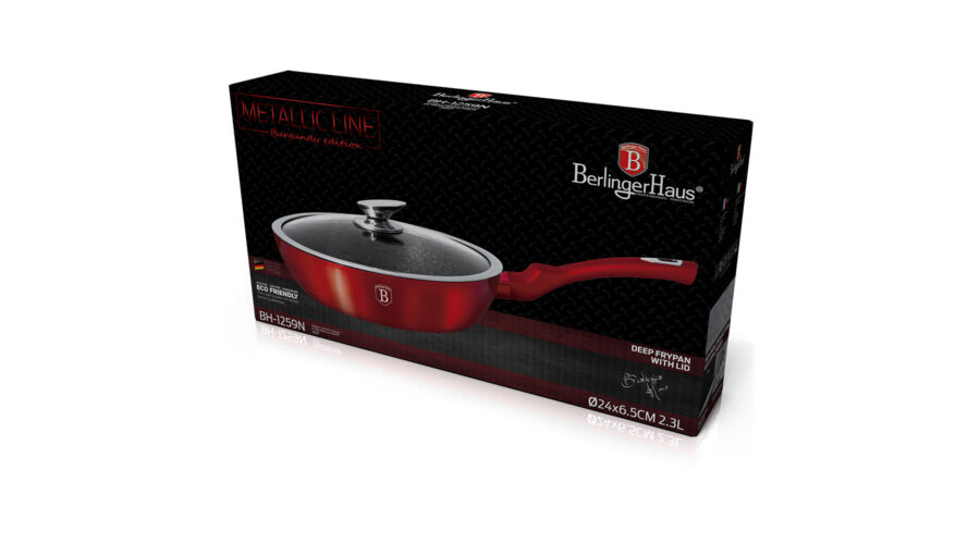 Bruttó ár: 8 890 Ft.Elfogyott!Berlinger Haus Metallic Burgundy Line mély serpenyő márvány bevonattal, fedővel, 24 cm