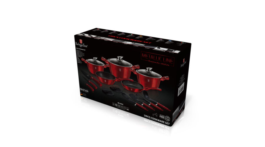 Berlinger Haus Metallic Line 17 részes edénykészlet márvány bevonattal, metál külső bevonattal, burgundy