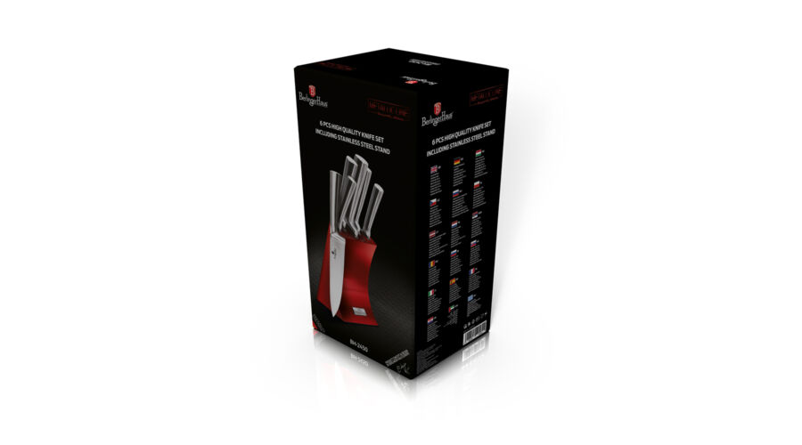 Bruttó ár: 5 100 Ft.Elfogyott!Berlinger Haus Metallic Line 6 részes rozsdamentes acél késkészlet, metál állvánnyal, burgundy