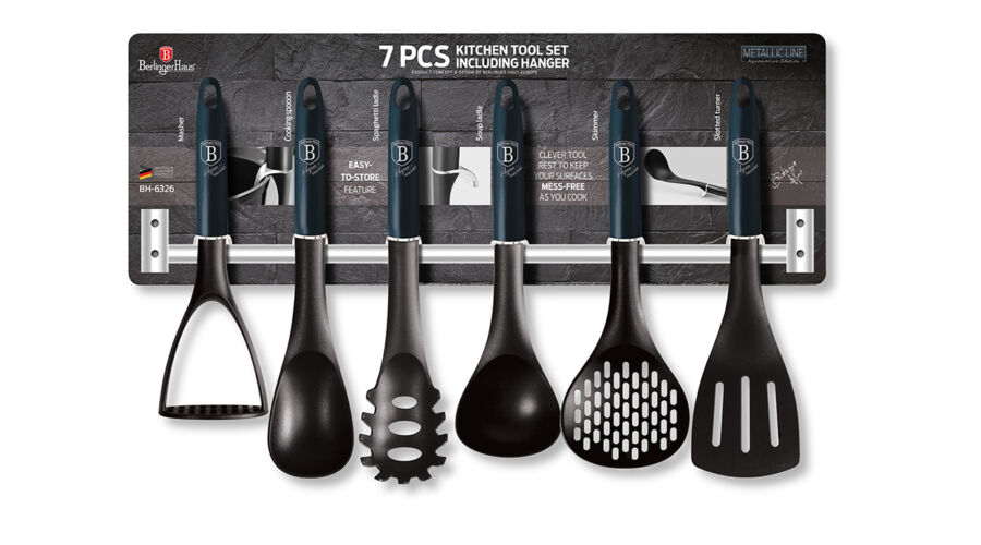 Berlinger Haus Metallic Line Aquamarine Edition 7 részes nylon konyhai eszköz készlet fali tartóval