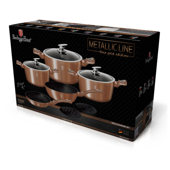 Bruttó ár: 56 490 Ft.Elfogyott!Berlinger Haus Metallic Rosegold Line 10 részes edénykészlet márvány bevonattal