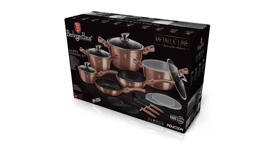 Bruttó ár: 59 900 Ft.RészletekBerlinger Haus Metallic Rosegold Line 15+3 részes edénykészlet márvány bevonattal, metál külső bevonattal