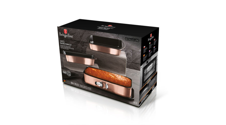 Bruttó ár: 4 190 Ft.Elfogyott!Berlinger Haus Metallic Rosegold Line 3 részes sütőforma készlet titán bevonattal, metál külső bevonattal