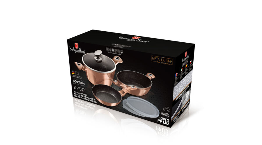 Bruttó ár: 58 790 Ft.Elfogyott!Berlinger Haus Metallic Rosegold Line 6 részes edénykészlet márvány bevonattal, metál külső bevonattal
