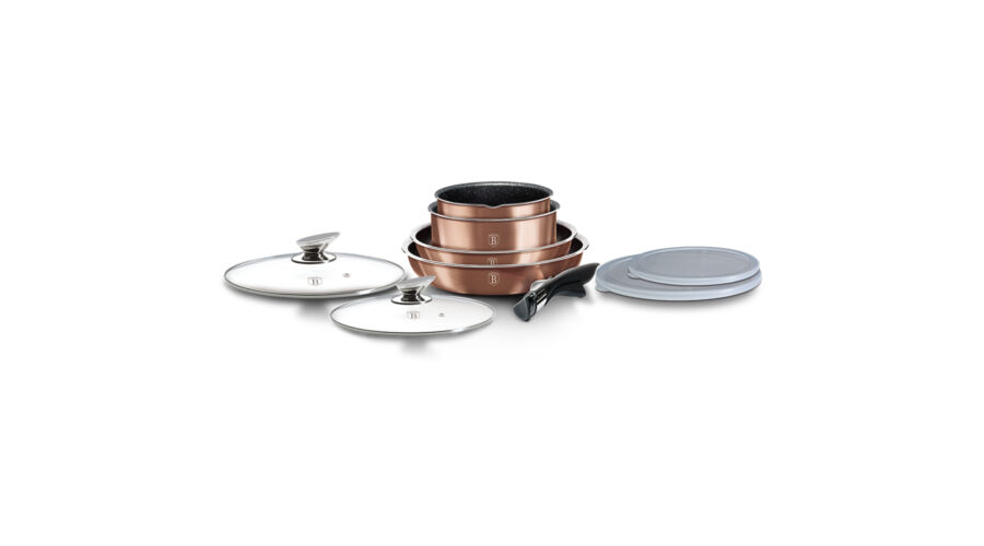 Berlinger Haus Metallic Rosegold Line 9 részes edénykészlet levehető nyéllel,márvány bevonattal, met