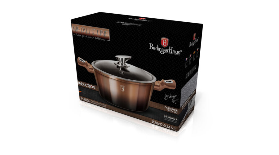 Bruttó ár: 11 790 Ft.Elfogyott!Berlinger Haus Metallic Line Rosegold Noir lábas márvány bevonattal, fedővel, 28 cm