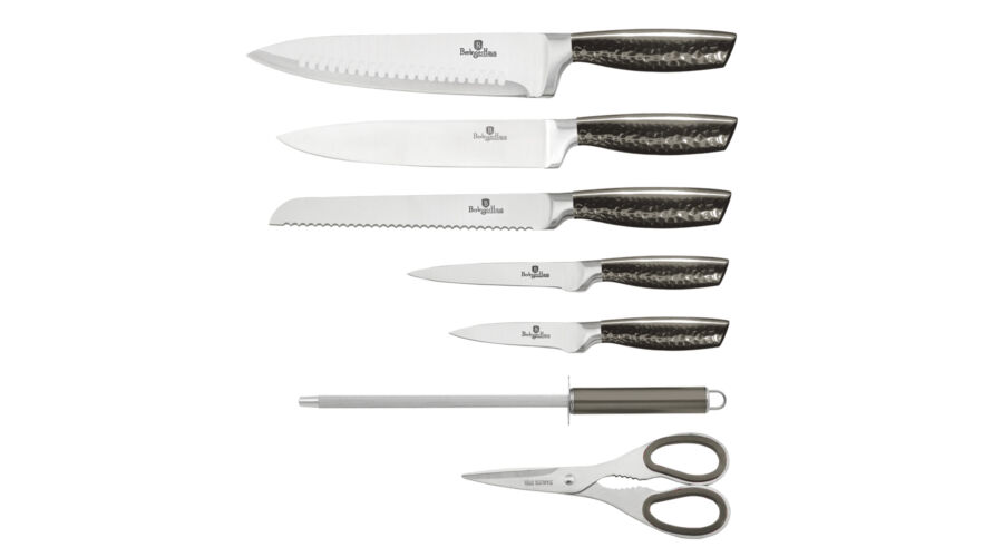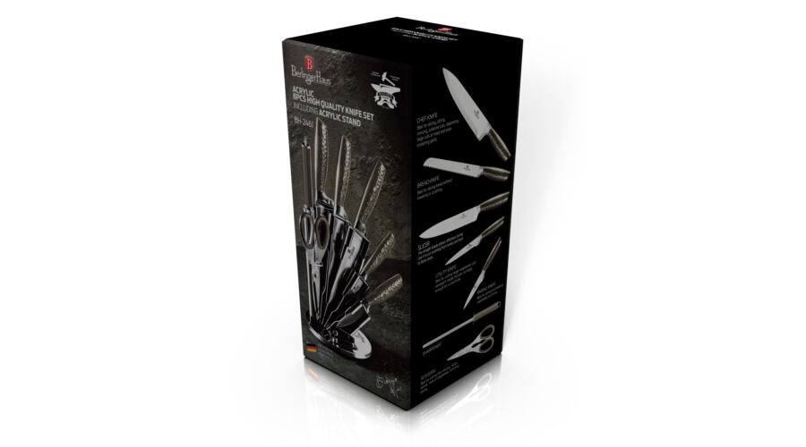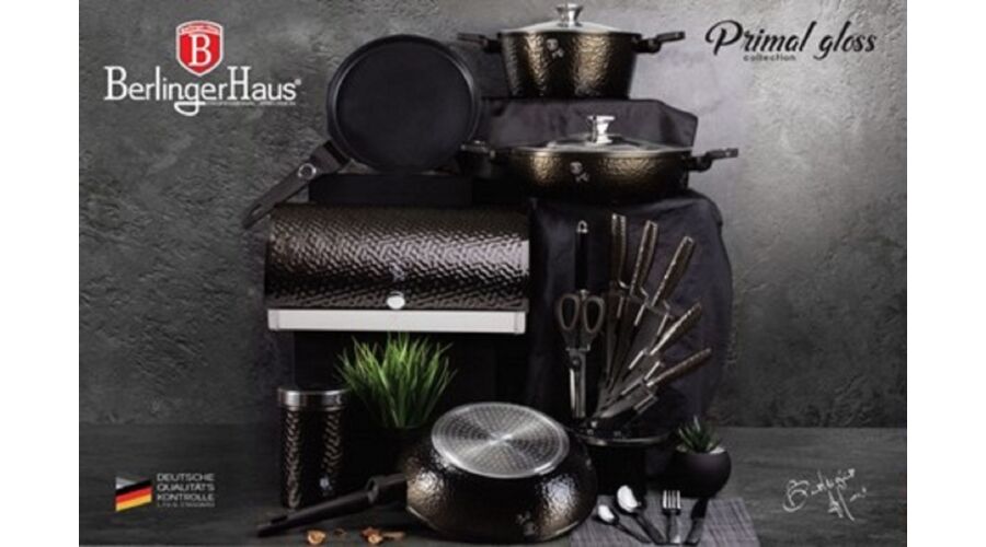 Bruttó ár: 4 100 Ft.Elfogyott!Berlinger Haus Primal Gloss Collection 8 részes rozsdamentes acél késkészlet állvánnyal, fekete