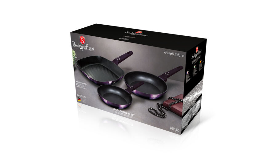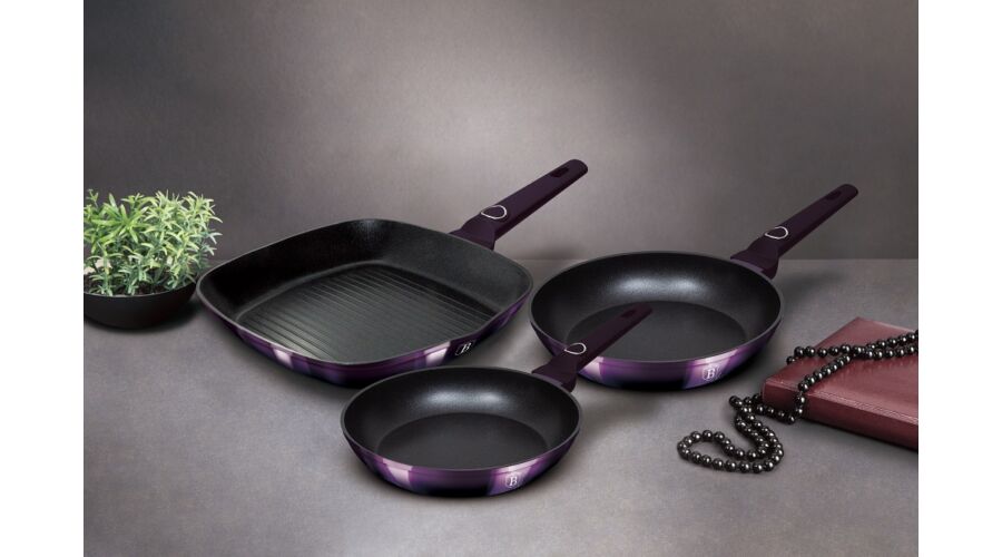 Berlinger Haus Purple Eclipse Collection 3 részes serpenyőkészlet grill serpenyővel, titán bevonatta