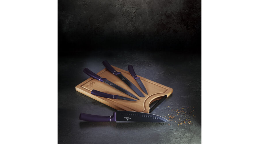 Berlinger Haus Purple Eclipse Collection 6 részes késkészlet bambusz vágódeszkával, lila