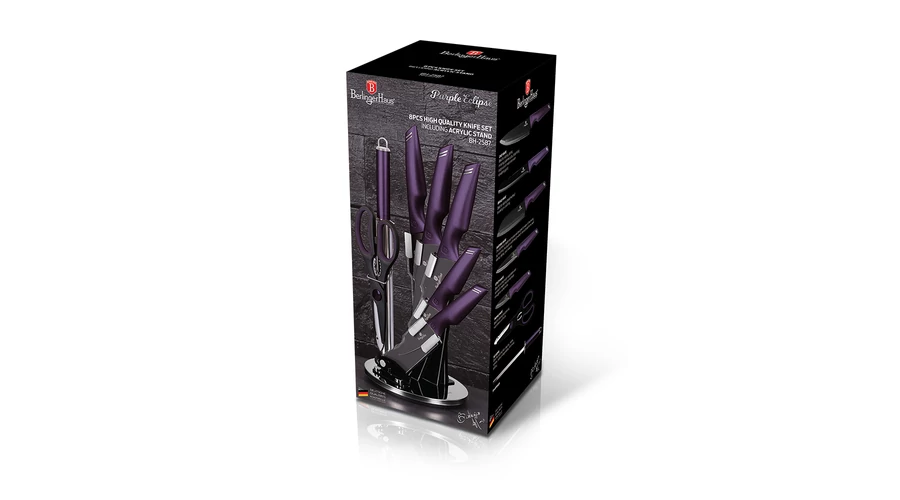 Bruttó ár: 11 890 Ft.Elfogyott!Berlinger Haus Purple Eclipse Collection 8 részes késkészlet tapadásmentes bevonattal, állvánnyal