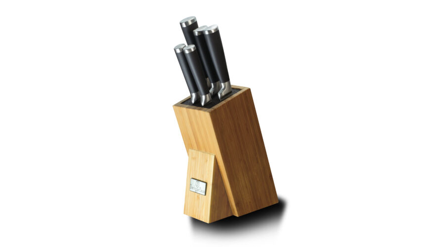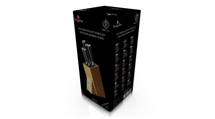 Berlinger Haus Royal Black Collection 7 részes rozsdamentes acél késkészlet bambusz késtartó állvánn