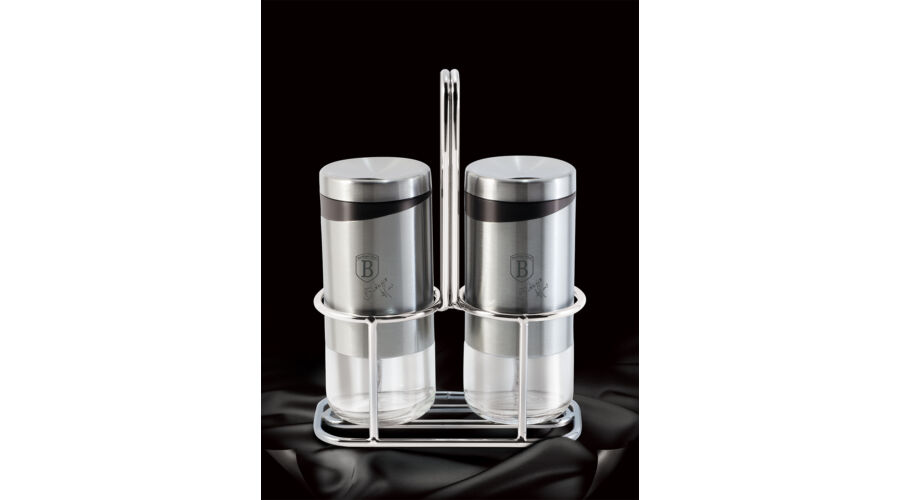 Berlinger Haus Royal Black Collection só- és borsszóró készlet állvánnyal, rozsdamentes/fekete