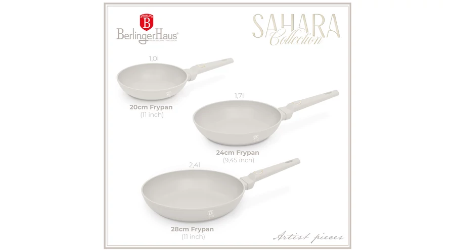 Bruttó ár: 17 590 Ft.RészletekBerlinger Haus Sahara Collection 3 db-os serpenyőkészlet titán bevonattal