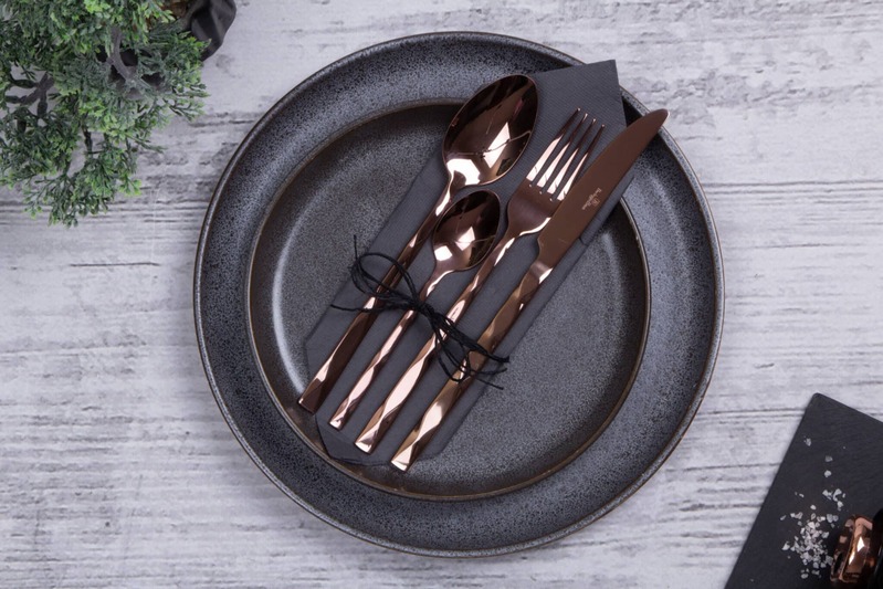 Bruttó ár: 16 890 Ft.Elfogyott!Berlinger Haus 6 személyes rozsdamentes acél evőeszköz készlet különleges mintával pezsgő színben