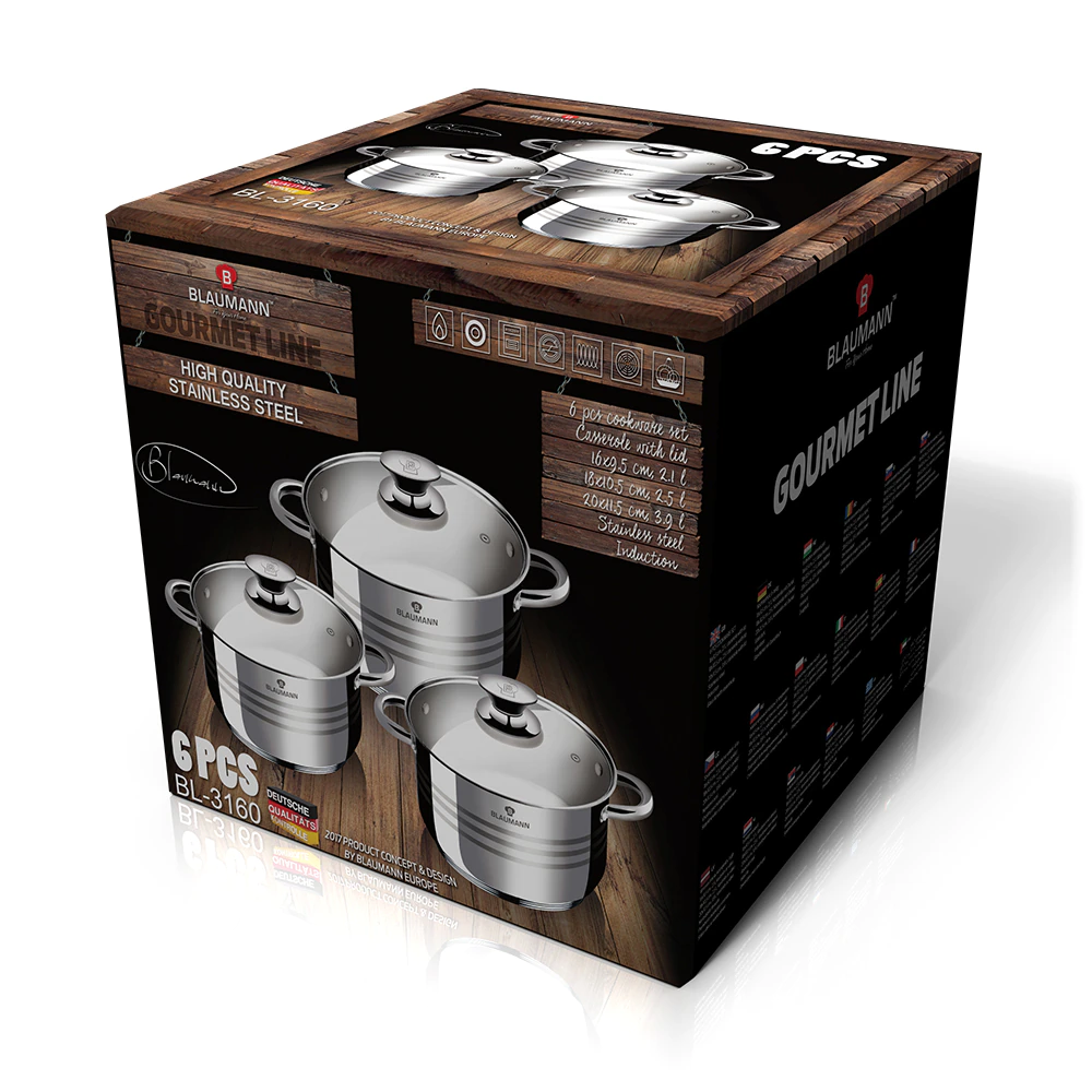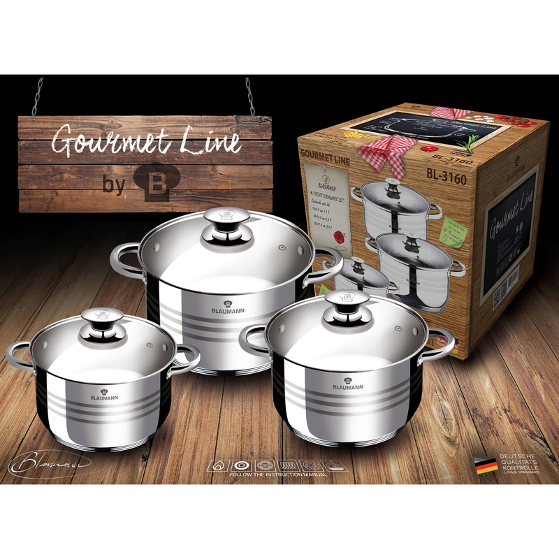 Bruttó ár: 42 190 Ft.Elfogyott!Blaumann edénykészlet, 6 részes, Gourmet Line