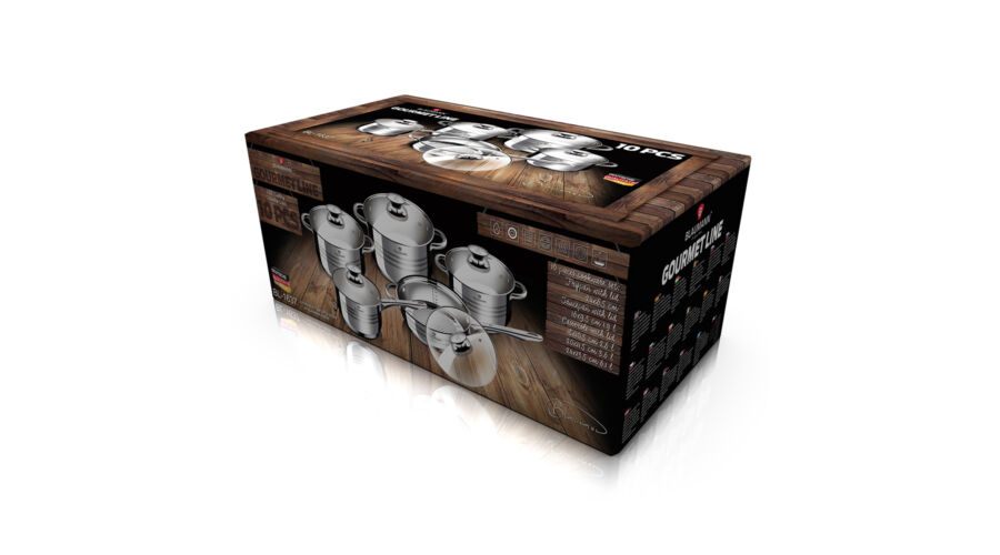 Bruttó ár: 58 100 Ft.Elfogyott!Blaumann Gourmet Line 10 részes rozsdamentes acél edénykészlet