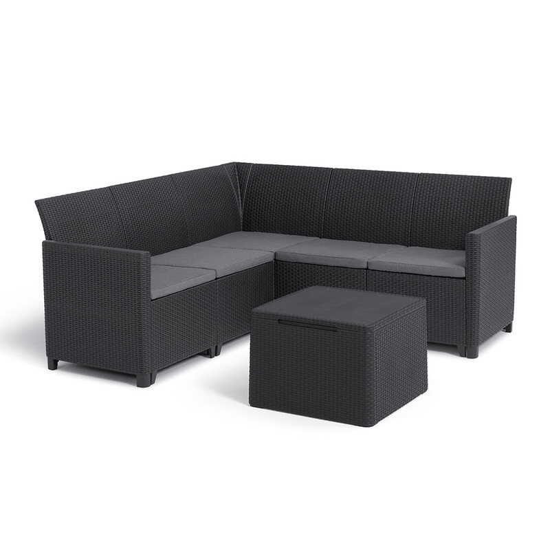 Claire 5 személyes műanyag rattan hatású kerti sarokgarnitúra, tárolós asztallal grafit - hűvös szürke Curver-253077