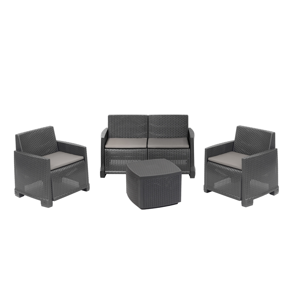 Como 4 személyes rattan hatású műanyag kerti szett antracit szürke Progarden-O314