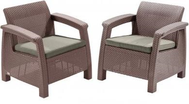 Corfu Duo Set 2 db-os műanyag rattan hatású kerti fotel készlet, barna - meleg taupe színkombináció, ülőpárnákkal. - Curver 17197993 - 223194-258944