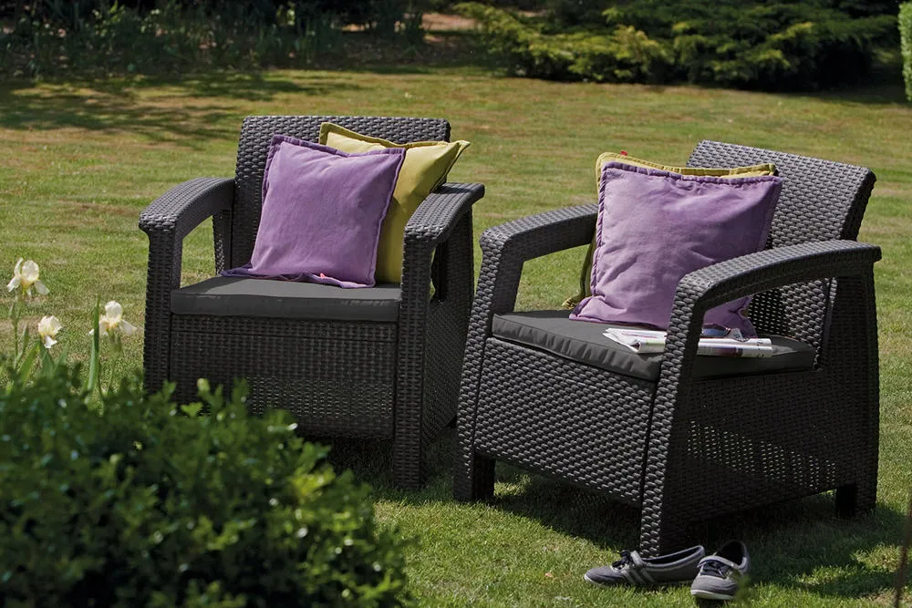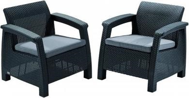 Corfu Duo Set 2 db-os műanyag rattan hatású kerti fotel készlet, grafit - hűvös szürke színkombináció ülőpárnákkal. - Curver 17197993 - 223175-258976