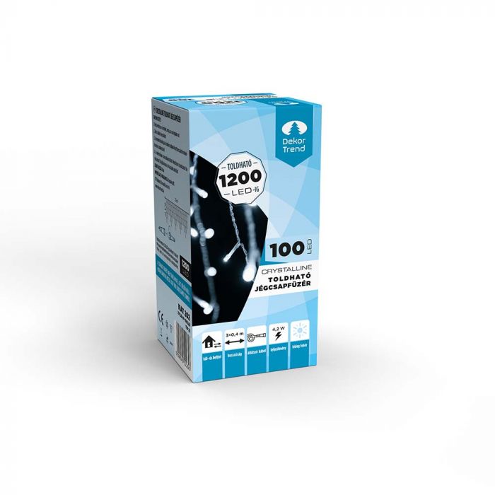Crystalline toldható jégcsapfüzér 3 x 0,4 m, 101 LED, hideg fehér, átlátszó kábellel
