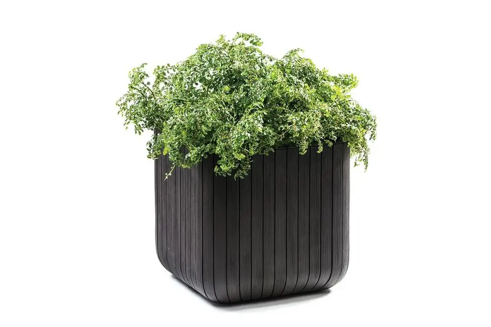A CUBE PLANTER M edény elegáns megoldás teraszához vagy házához. Az eredeti forma és az egyedi minták - a természetes fára emlékeztető textúra - kombinációja kiemeli a klasszikus és modern design varázsát, és hangsúlyozza a növények szépségét.