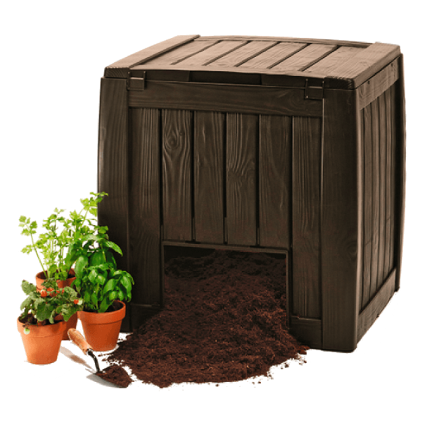 Műanyagból készült, whiskey barna színű 340l-es műanyag kerti komposztáló aljal. - Curver 17196661 - 231600