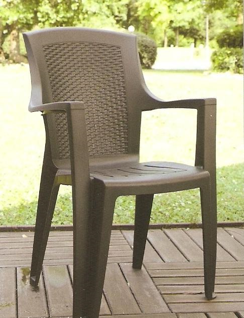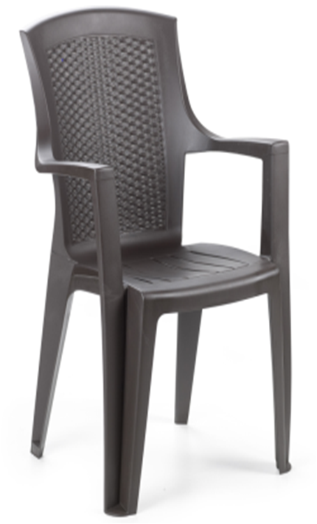 Masszív erős kerti szék, magas támlás. Karfás szék. Rakásolható. Nagyon kényelmes műanyag szék. Kerti összejövetelekhez tokéletes választás. Rattan hatású szék.