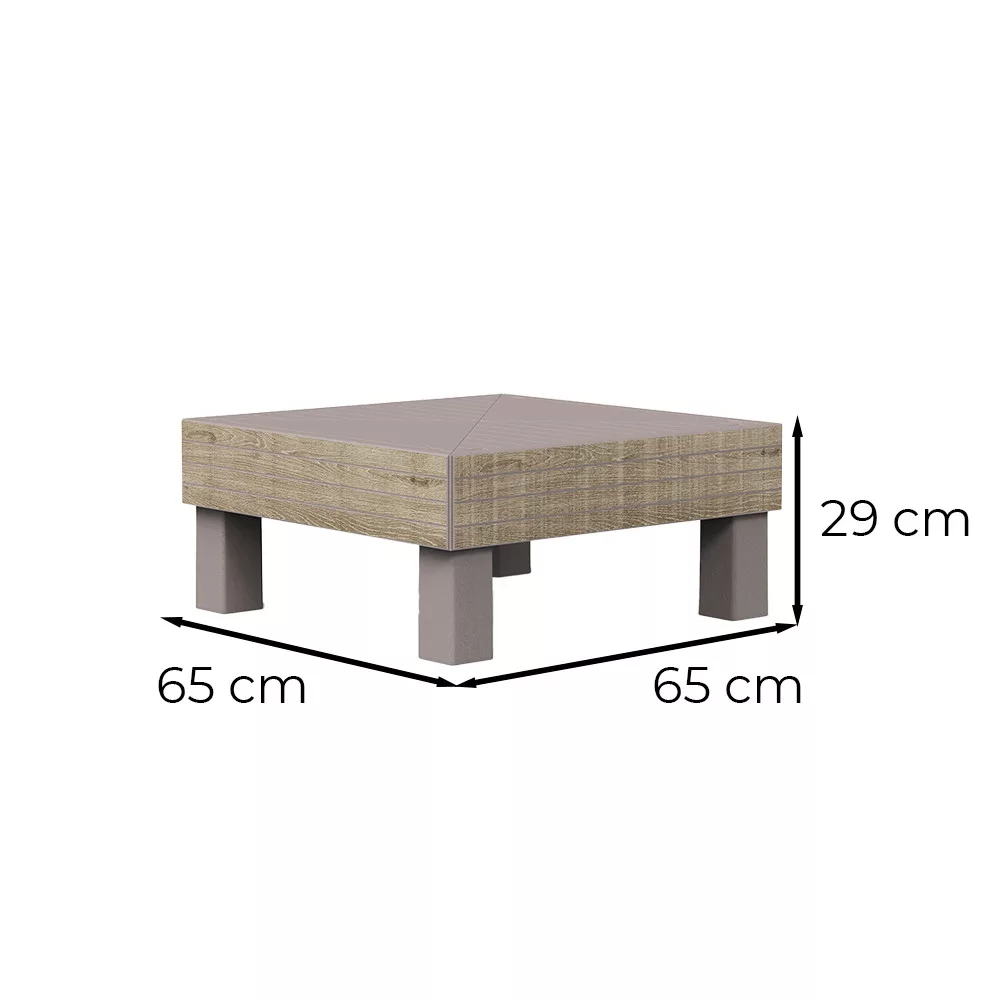Méret: 65 cm x 65 cm (alap), 29 cm (magasság)