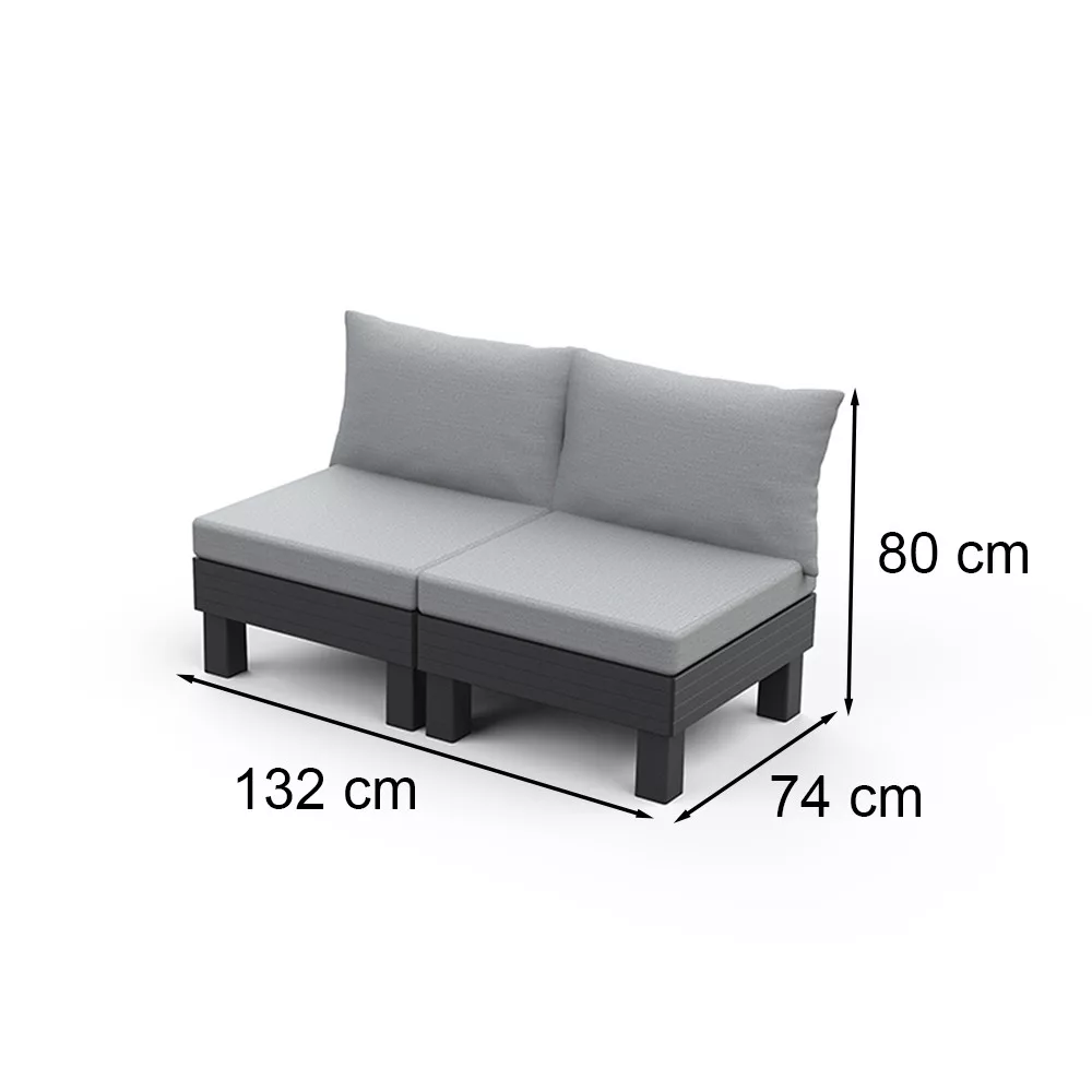 Elements műanyag kerti két személyes kanapé grafit szürke, párnával Curver-257365