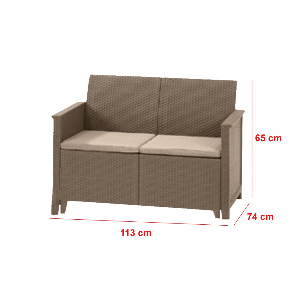 Bruttó ár: 94 990 Ft.Elfogyott!Emma műanyag kerti bútor szett, 3 üléses kanapéval,tárolós asztallal cappuccino - homok Curver-246144