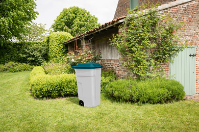 Görgős műanyag kerti szemetes 110 L bézs - zöld tetővel