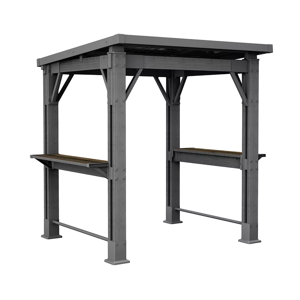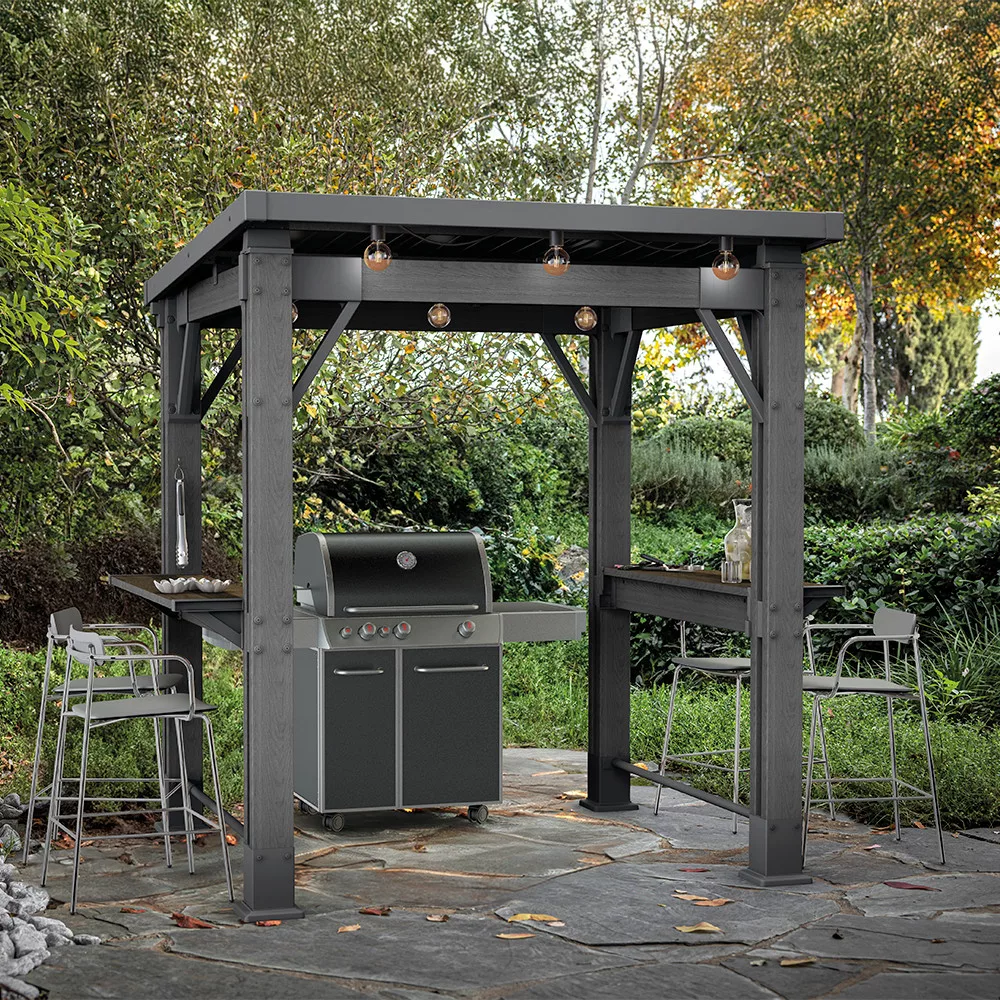A beépített tálalópolcok mindent kéznél tartanak, nem kell többet futkosni a konyhába, vagy ott egyensúlyozni a tányérokkal. Helye van a grill eszközöknek, italoknak, és akár barátaid is leülhetnek melléd beszélgetni, miközben sül a hús. Ez nem csak egy fedett tér – ez a saját szabadtéri konyhád.