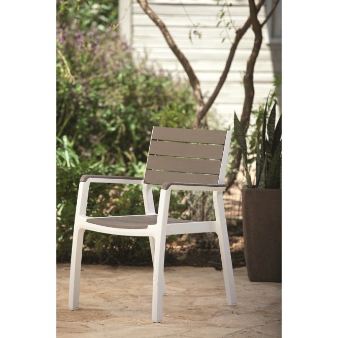 Harmony műanyag kartámaszos kerti szék fehér - világos barna