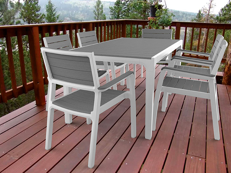 A Harmony asztal stílusos és karcsú felépítése elnyeri mindenkinek a tetszését, aki szeret a szabadban étkezni. A termék egyesíti a faasztal megjelenést a műanyag elemek praktikus felhasználásával. Az asztal ellenáll az időjárás hosszan tartó viszontagságaival szemben. Nagyon könnyen tisztítható és egyszerűen összeszerelhető.
