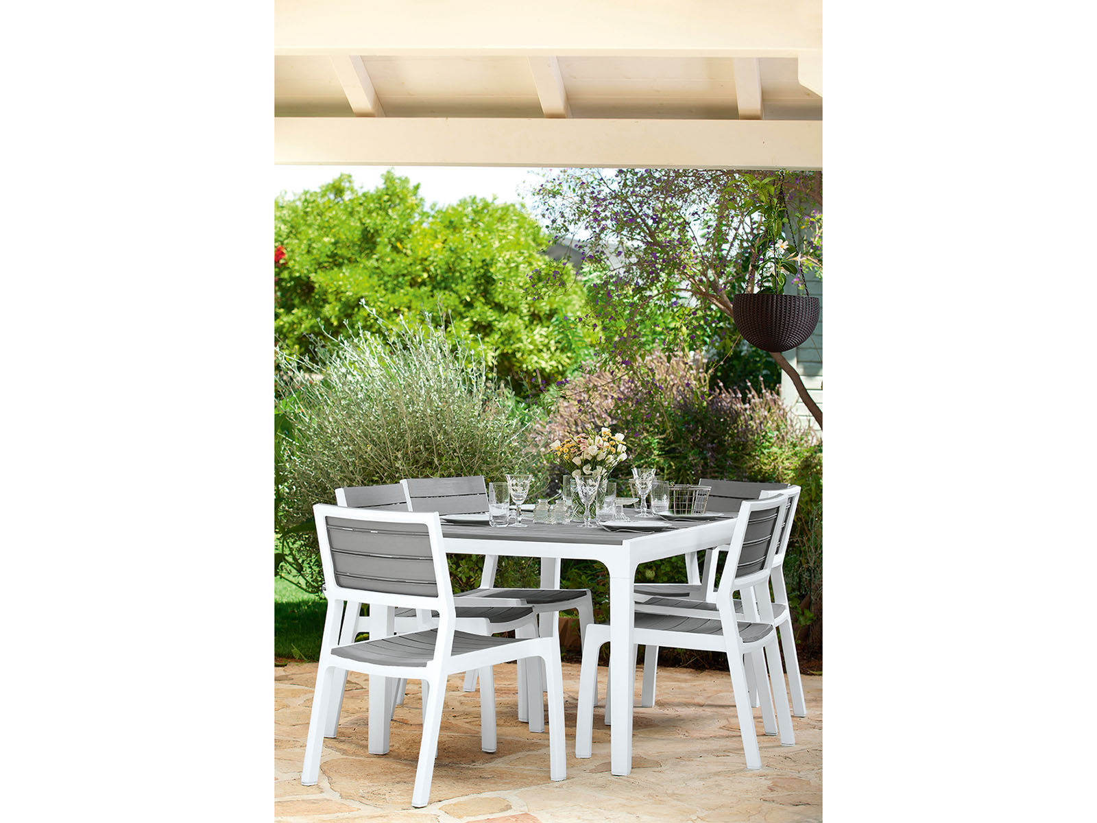 A modern és nagyon kényelmes Harmony szék tökéletes kiegészítője a ház körüli kerteknek vagy teraszoknak, de akár a beltereknek is. A terméket kényelmes háttámla és az ülés, illetve a fa felületet imitáló borítás jellemzi. Összeszerelése könnyű, tisztítása egyszerű és ellenáll az időjárás viszontagságainak.