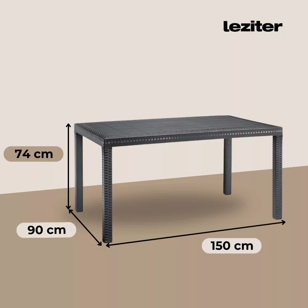 Strapabíró anyaga: UV sugárzásnak és az időjárás viszontagságainak ellenálló műanyagból készült. Az asztal ideálisan beleillik minden ház körüli térbe, ahol ideális helyet teremt a szabad levegőn való pihenéshez. Modern stílus által inspirált felület a termék esztétikai előnyei közé sorolható.