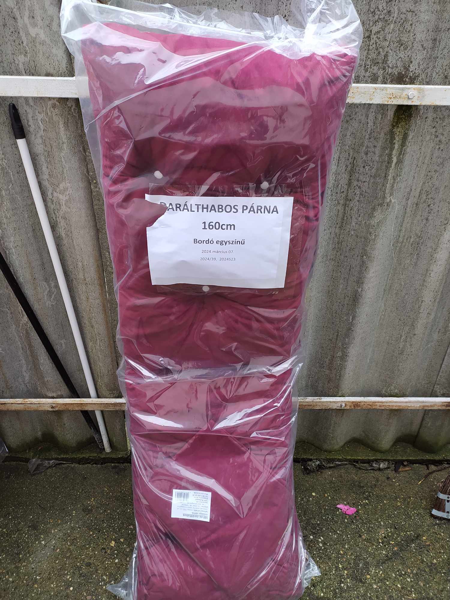 Párna mérete: 160 x 50 x 9 cm (hosszúság,szélesség,vastagság)