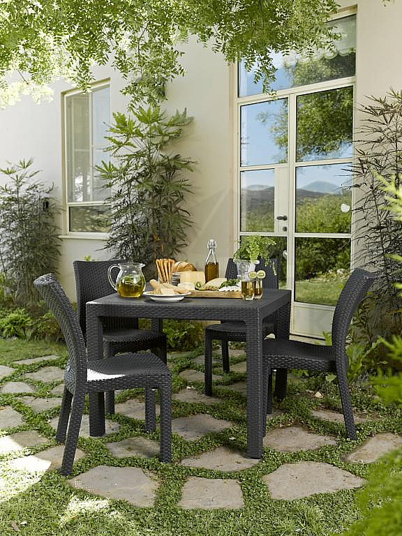 King rattan hatású műanyag kerti asztal antracit szürke Progarden-0294