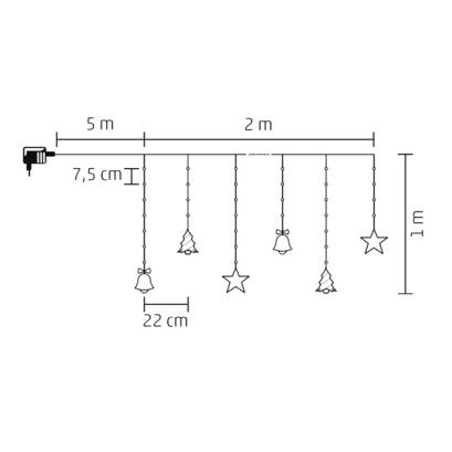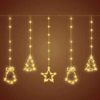 Kül és Beltéri 10 figurás fényfüggöny, meleg fehér színben, 2 méter, 186 LED