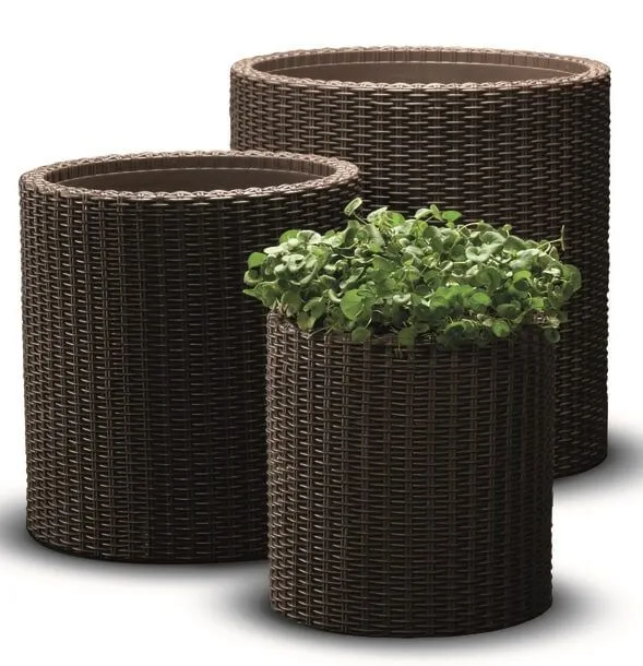 Large Cylinder Planter műanyag kerti virágláda whiskey barna