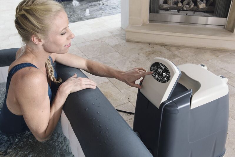 A masszázsmedence egy gombnyomással felfújható, és vízfeltöltés után azonnal