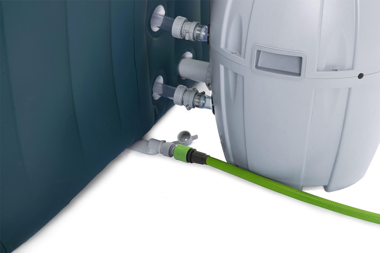 A medence megerősített fedéllel rendelkezik, melyet biztonsági hevederek rögzítenek az extra szigetelés érdekében. A komplett csomag tartalmaz pumpát is a felfújáshoz, valamint ChemConnect ™ vegyszer adagoló rendszert. A ChemConnect ™ adagoló tiszta, egészséges vizet és stabil klórszintet biztosít, amely egyenletesen eloszlik az egész medencében.