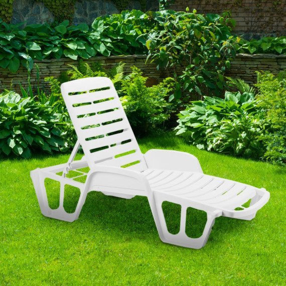 Lettino műanyag kerti fix napozóágy fehér Progarden-O42