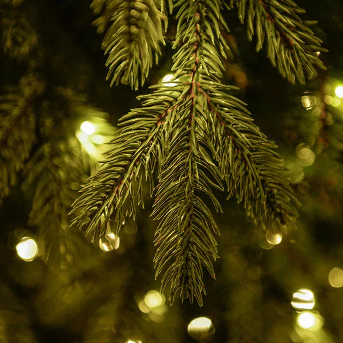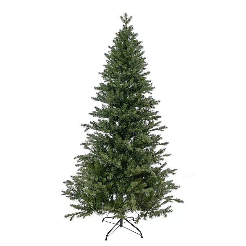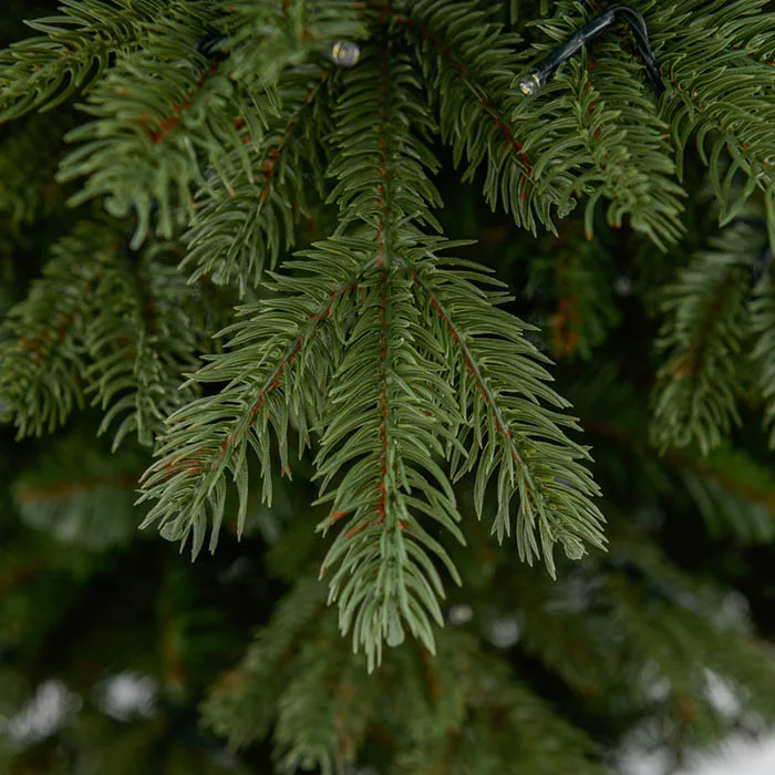Karcsú és formás műfenyő világítással együtt. Kívül 3D-s levelek teszik élethűvé, belül 2D-s levelek teszik dússá az összképet. Ideális választás, ha keveset szeretnénk a fényfüzérekkel foglalkozni.