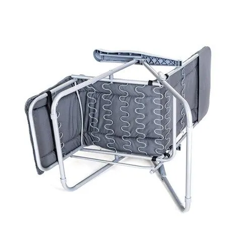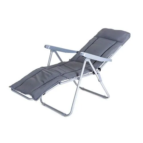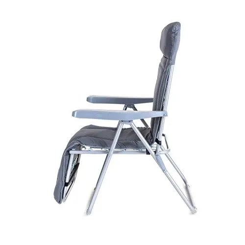 Állítható támlájú összecsukható párnázott szék lábtartóval (5 pozíció). Anyaga: acélváz kartámasszal, 5 cm vastag 160 g-os poliészter párnázattal kiegészítve, így rendkívül kényelmes ülést és relaxálást garantál. A szék teherbírása 100 kg.