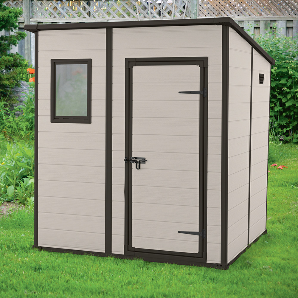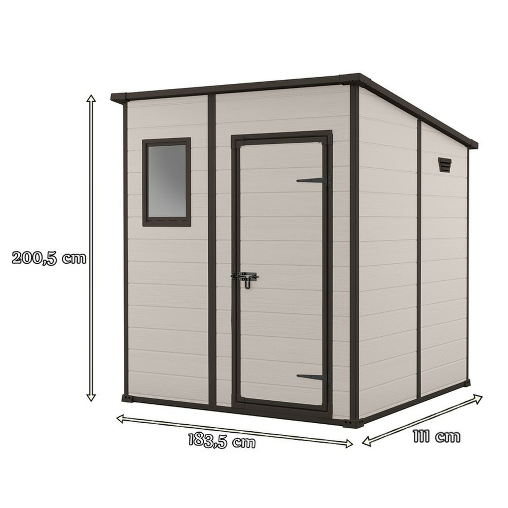 Manor Pent 6x4 műanyag kerti szerszámtároló ház, más néven szerszámos ház, sufni, fészer, beige-barna színben. - Curver-255141