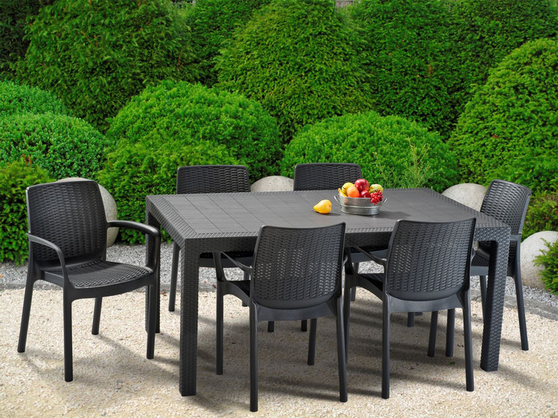 Melody rattan hatású műanyag kerti asztal grafit szürke színben - Curver 17190205 - 230668-255809